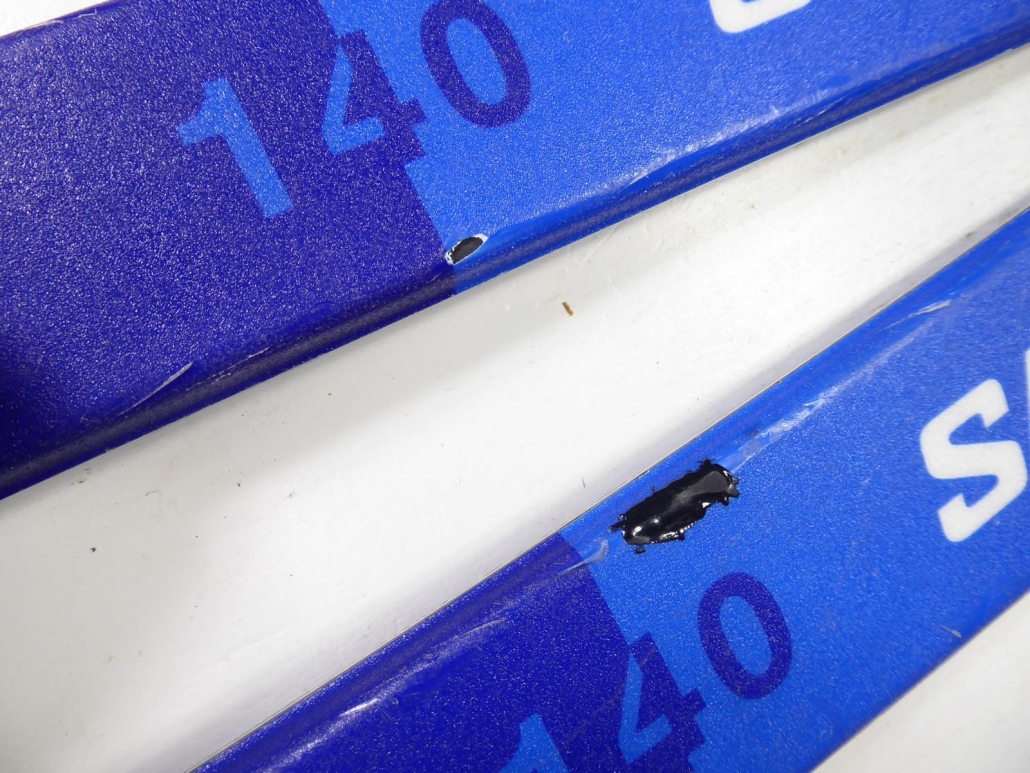 Die Ski haben auf der Oberfläche ein paar normale, sichtbare Gebrauchsspuren, die die Fahreigenschaften keinesfalls beeinträchtigen! Ein Ski wurde vorne ausgebessert! (Siehe Bilder!) Der Belag ist allgemein in einem top Zustand! (Siehe Bilder!)